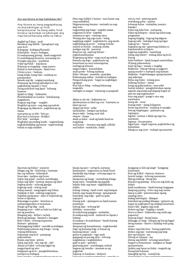 Ang salitang anak-pawis ay tumutukoy sa taong mahirap. Ang kahulugan ng taong nagtigis ng pawis ay ang pagiging masipag. Kapit-bahayneighbor-isang tao na naninirahan sa kasunod o malapit sa isang bahay.