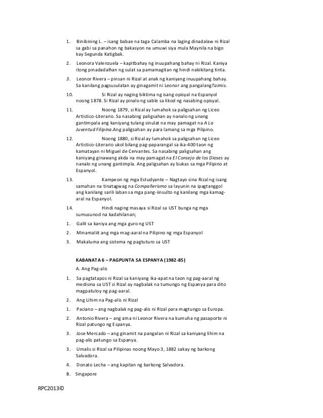 Pinayuhan niya si Trining na habang bata pa ito ay dapat magbasa nang magbasa ng buong puso. Ang mga layunin ng Liga ay isasakatuparan sa pamamagitan ng paglikha ng isang pamunuan na binubuo ng Kataas-taasang Konseho Supreme Council Probisyal na Konseho Provincial Council Kilalang Konseho Popular Council. MGA PAG-IBIG NI RIZAL 1.