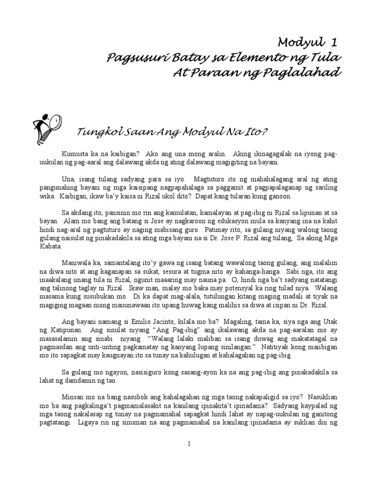 Modyul 1 Pagsusuri Batay Sa Elemento Ng Tula At Paraan Ng Pa Pdf