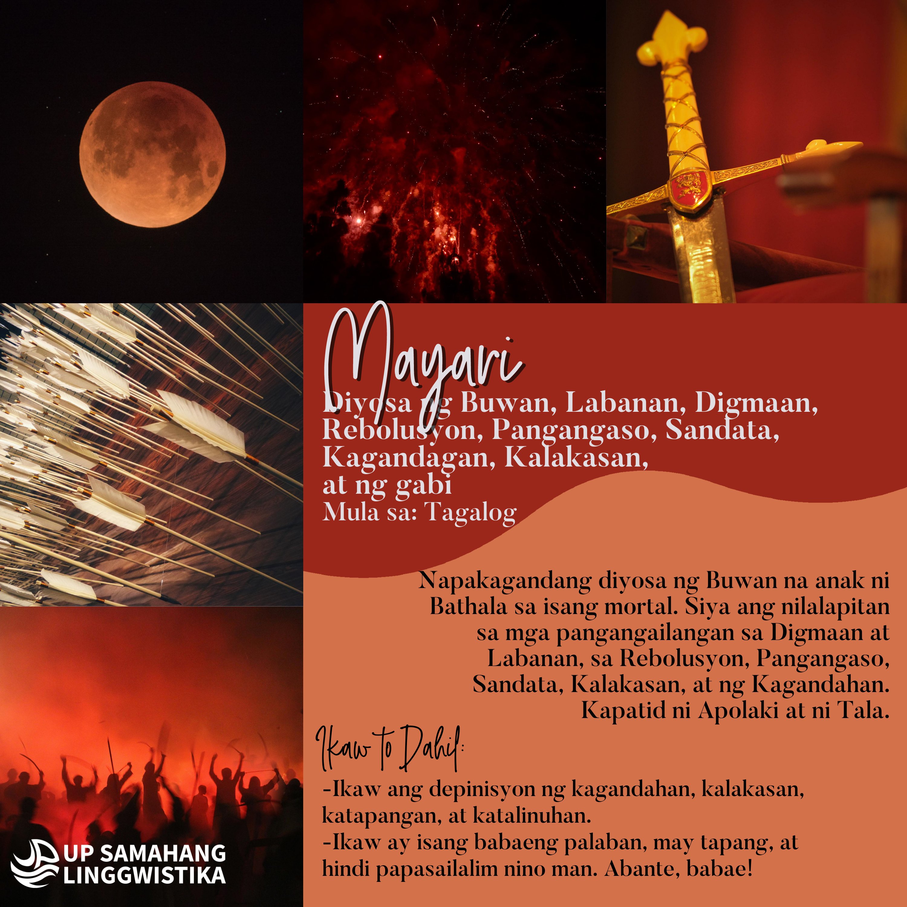 Up Samahang Linggwistika Up Salin On Twitter Rt Kung Ikaw Si Mayari Diyosa Ng Buwan Labanan Digmaan Rebolusyon Pangangaso Sandata Kagandahan Kalakasan At Ng Gabi Https T Co Ugvm0onwru Twitter
