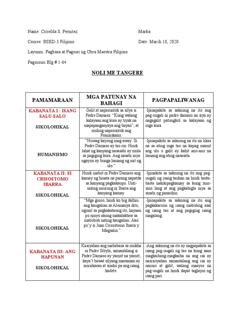 Taong tumulong sa pagpapaliwanag ng noli me tangere. Filipino Ikasiyam na Baitang Alternative Delivery Mode Ikaapat na Markahan Modyul 7. Inang bayan Pilipinas Mga Pook kung saan isinulat ang nobela. Idealismo ng mga kabataang nakapag-aral.