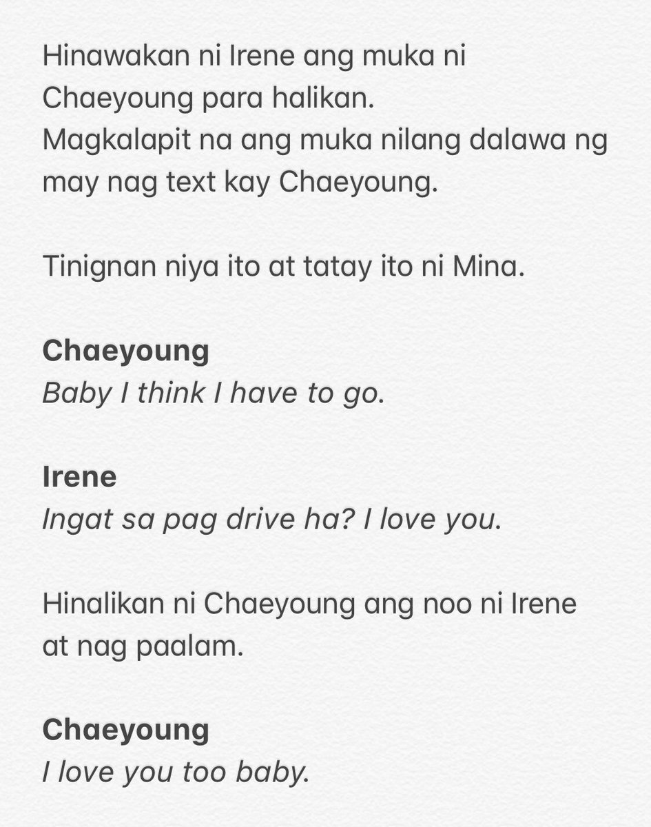 Good luck sa iyong bagong trabaho. Akoy napaisip at biglang napatingin di ko malaman kung anong dapat gawin. Pasensya na kung nasaktan kita sa mga nasabi ko SORRY pero gago mas nasaktan mo ako.